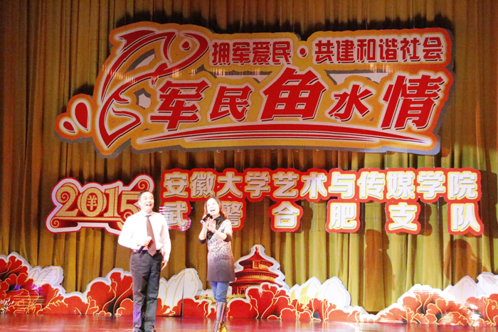 签约仪式后,学院师生和武警官兵在武警合肥市支队礼堂共同奉献了一台“军民鱼水情”的精彩演出。武警合肥市支队支队长周文才大校,政治委员束从国大校,以及近1000名武警官兵观看了演出。