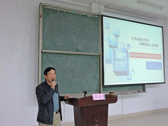 张晶副院长首先从“羚羊早安”入手,引入了“以灵动的创意,追求艺术创新;用唯美的创作,实现人生创业”这一系统的创新创业理论,分别从教育层面、学院层面、学生层面详细阐述了我院创新创业教育的思考。讲授纲要主要有三个内容:一是从艺科交融:定位艺术类本科院校创新创业人才培养方向;二是四创一体:明确艺术类本科院校创新创业人才培养思路;三是双向对接:探索艺术类本科院校创新创业人才培养途径,探索并构建了艺术类应用型本科院校创新创业教育模式。
