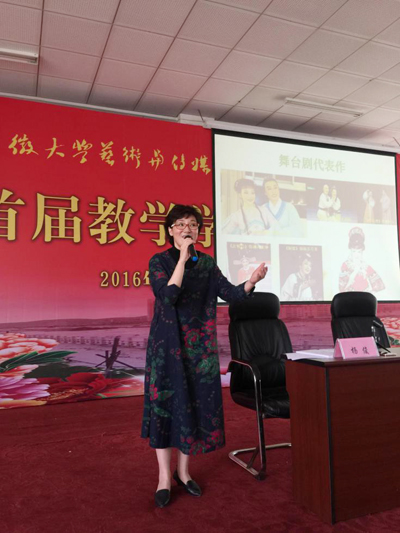 作为学院教学活动周系列活动之一,杨俊应戏剧影视系邀请,于下午两点在一教二阶教室做了题为《不忘初心·芳华萃意浓》的精彩讲座。讲座由戏剧影视系董兆和书记主持。杨俊对黄梅戏的起源、发展做了详细的阐释,通过自身艺术经历的分析,边讲授边演绎,在座师生不时爆发出阵阵掌声。(傅润杨/文)