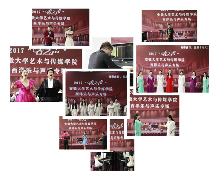 2017“春之声”专场演出是音乐舞蹈系“四季”系列音乐会之一,也是艺术类高层次应用型表演人才教学资源库建设项目、安徽省高等学校专业结构优化调整与专业改造项目、安徽省高校领军人才引进与培育计划项目、安徽省高等学校省级质量工程特色(品牌)专业项目和安徽省高等学校省级质量工程名师(大师)工作室项目的系列成果之一,更是学院“砥砺奋进,喜迎十九大”系列活动的重要组成部分,表现了学院上下全面深入贯彻党的十八届六中全会精神,以优异的成绩迎接党的十九大胜利召开的精神风貌。(文/薛业浩 审/孙来法)