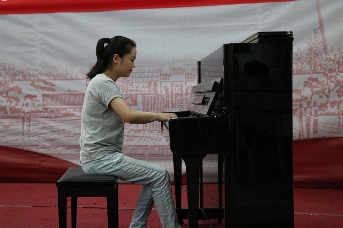 在互动环节,王香君就“如何练琴”、“面对挫折怎么办”等问题同大家进行了热烈的交流。音乐舞蹈系党总支书记孙来法教授也表达了自己对香君同学的敬意,他说“一个眼睛看不见的孩子,钢琴弹得如此出神入化非常不容易。面对失彩的人生,她用她的琴键演绎了多彩的命运交响曲。”
