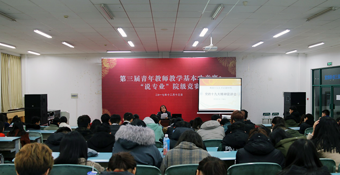 为了深入学习贯彻党的十九大精神,激发青年学生践行新思想的热情,学院党委十九大宣讲团成员罗耀东教授、杨丽副教授分别于12月12日和19日为美术设计系2015、2016及2017级全体学生共400余人作了党的十九大精神专题宣讲。