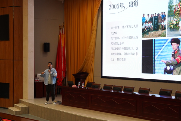11月1日,艺馨大讲堂第十一讲在综合楼五楼报告厅开讲,邀请合肥市第十二届青联委员、合肥市新联会常务理事、新站区新联会秘书长戴常伟作题为《我的创业之路》的专题讲座。