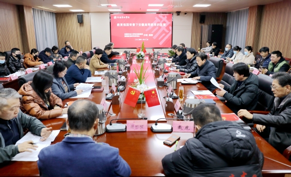 2024年1月12日,校党委理论学习中心组开年聚焦特色高校、特色学科专业(简称“双特色”)建设,邀请安徽农业大学校党委委员、高等教育研究所所长方明教授就“教育强国背景下安徽高等教育的发展”做专题辅导报告。校党委书记韩军主持会议并讲话。