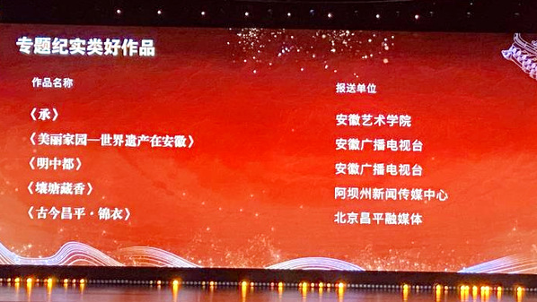 4月20日,首届中华优秀传统文化视听大会在江苏南京举行,我校出品的纪实片《承》从1513部作品中脱颖而出,获评人文纪实类“2022—2023年度好作品奖”,是安徽省高校中唯一一部获奖作品。