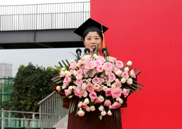 优秀毕业生代表李威深情回忆艺馨湖畔的草地音乐会、放学时漫天的晚霞,感叹“关关难过,关关过”,再回首风起四海,母校是永远的青春代名词。