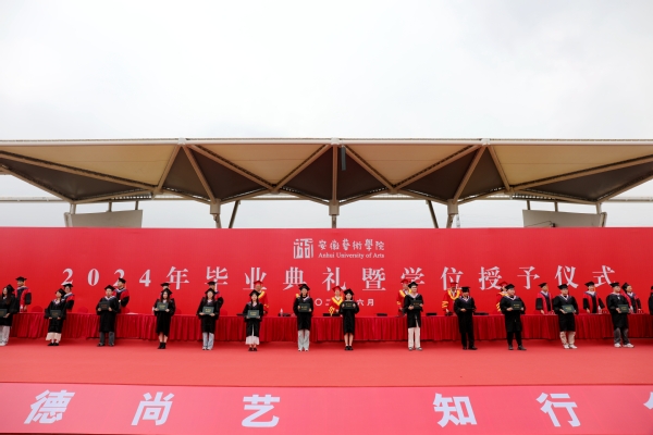 6月25日上午,我校2024年毕业典礼暨学位授予仪式在校运动场举行。校党委书记、学校学位评定委员会主任韩军博士,校党委委员、副校长、学位评定委员会副主任陈林教授,校党委委员、纪委书记程宗林,校党委委员、人事处处长、戏剧学院党总支书记曹晓富,校党委委员、组织部部长王琍琍教授出席典礼。各职能部门、二级学院负责人及一千余名毕业生、毕业生家长、毕业班辅导员、教师代表共同见证这一庄重而神圣的时刻。毕业典礼由校党委委员、副校长柳友荣主持。