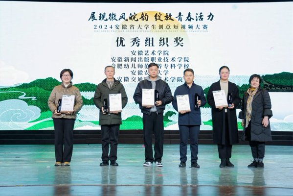 本次大赛以“展现徽风皖韵,绽放青春活力”为主题,设徽影漫步·旅动心弦、文韵风华·校韵悠长、古韵今声·非遗新绘、筑梦田野·青春担当、智绘未来·AI创想五个竞赛单元。自2024年9月启动以来,共吸引了来自中国科学技术大学、安徽大学、安徽师范大学、安徽理工大学、安徽医科大学等省内60余所高校学生参与,征集到2162件参赛短视频。经大赛评委会初评、终评,我校选送的《玉鹰奇遇》、安徽农业大学选送的《树影流年 安农芳华》、中国科学技术大学选送的《徽州叹》、蚌埠医科大学选送的《外国人感知安徽乡村振兴——郭府行》、合肥经济学院选送的《喵见黄山》分别荣获五个竞赛单元一等奖;合肥师范学院选送的《徽韵未来 科技焕新》等10件作品荣获二等奖;安徽大学选送的《徽韵传承·智绘非遗》等15件作品荣获三等奖;芜湖职业技术学院选送的《传承千年装裱技艺,彰显传统文化魅力》等25件作品荣获优秀奖;《徽州叹》《树影流年 安农芳华》《喵见黄山》荣获最佳创意奖;新利体育首页官网、安徽新闻出版职业技术学院、合肥幼儿师范高等专科学校、安徽农业大学、安徽交通职业技术学院荣获优秀组织奖。