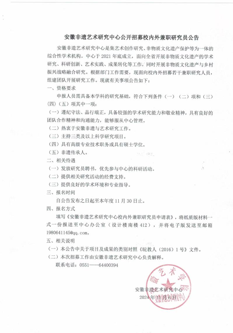 安徽非遗艺术研究中心公开招募校内外兼职研究员