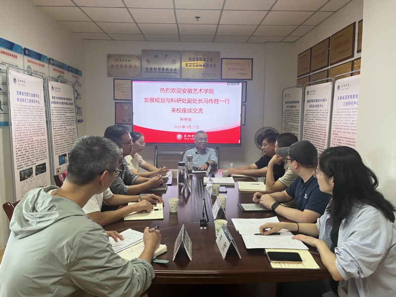 为进一步强化学校教科研经费预算的有效执行,拓宽横向课题合作与服务渠道,发展规划与科研处副处长冯传胜一行于9月27日赴巢湖学院调研。该校科研处处长姚磊、副处长陈海银,美术与设计学院副院长田世斌等同志热情接待。
