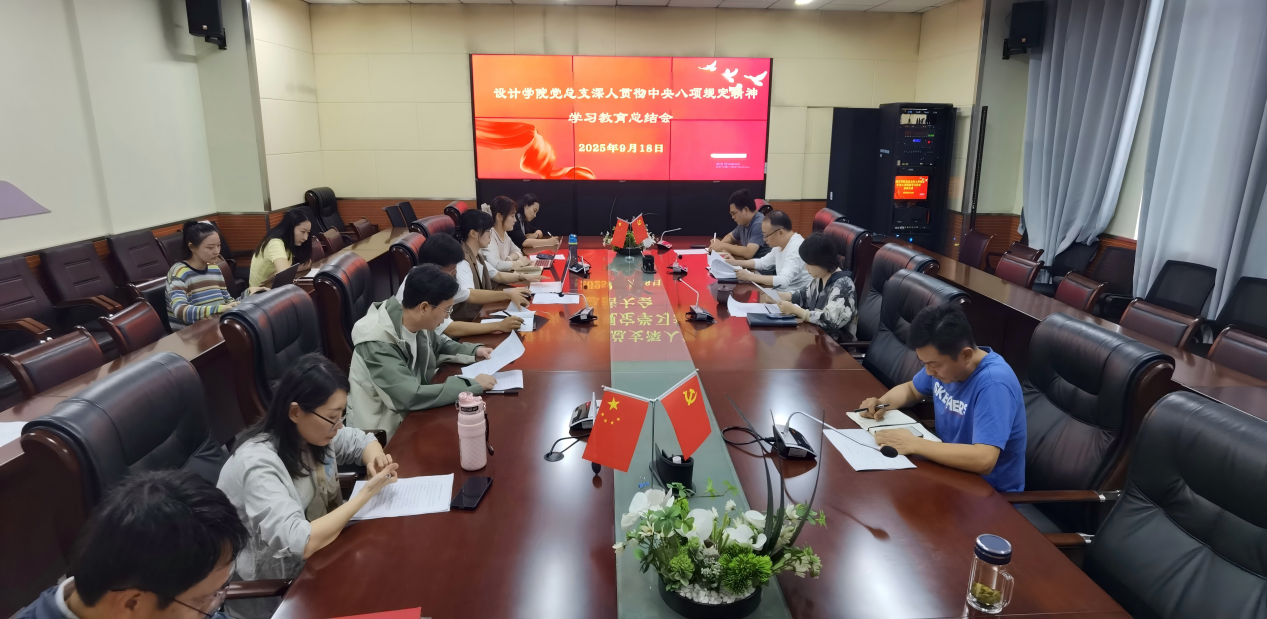 9月18日下午,设计学院党总支在设计楼403会议室召开深入贯彻中央八项规定精神学习教育总结会。设计学院党总支班子成员,各党支部书记、支部委员及青年教师代表参加会议。会议由党总支书记俞璋凌主持。会上,集中学习了习近平总书记关于深入贯彻中央八项规定精神学习教育的重要指示精神,传达学习了安徽省委十一届十次全会精神和学校党建领导小组工作会议暨深入贯彻中央八项规定精神学习教育总结会议精神。党总支副书记夏守军通报了全院学习教育工作成效,各党支部依次汇报了支部学习教育开展情况,认真剖析了存在的不足,制定了切实可行的整改举措。俞璋凌在总结中指出,学习教育开展以来,设计学院各级党组织坚持以习近平新时代中国特色社会主义思想为指导,认真贯彻落实上级党组织工作部署和要求,抓实学习强化理论武装、刀刃向内认真查摆问题、动真碰硬狠抓整改整治,师生凝聚力、向心力进一步提升,作风建设进一步增强,党建引领学科发展作用进一步凸显,学习教育取得了扎实成效。她强调,全院教职工要以此次总结大会为新的契机,持续改进工作作风,抓好课堂“责任田”,充分发挥模范带头作用;要加强队伍建设,抓好党员日常教育管理,通过开展谈心谈话及时了解他们