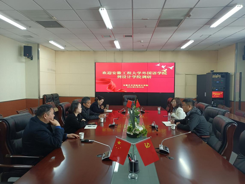 3月26日上午,安徽工程大学外国语学院英语系主任苏涛一行来我校设计学院调研本科专业发展建设等工作。设计学院党总支书记俞璋凌,继续(国际)教育学院院长陈明和设计学院副院长撒后余与苏涛一行在设计楼第二会议室召开了座谈会。会议由俞璋凌主持。