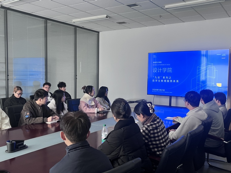 11月21日,设计学院于设计楼第一会议室开展“九说”系列之说学生教育服务体系活动,各班级学生代表参与,党总支副书记夏守军主讲。