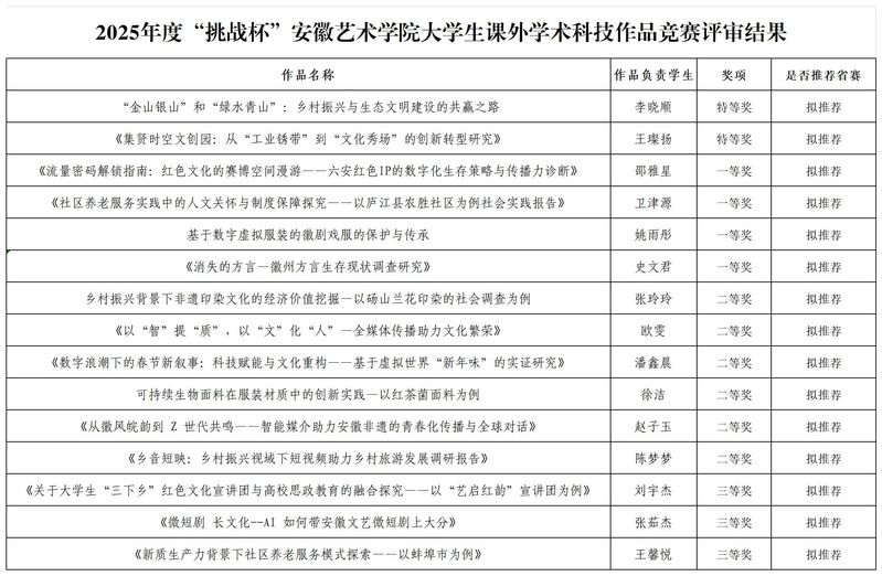 近年来,我校以“挑战杯”竞赛等赛事为抓手,深化“赛教融合”模式,不断提升学生自主学习能力、实践应用能力和创新创业能力。下一步,校团委将按照省赛要求,认真完成省赛作品系统录入及材料报送工作,切实做好“挑战杯”省赛、国赛服务保障工作,力争取得新突破,为学校高质量发展蓄势赋能。