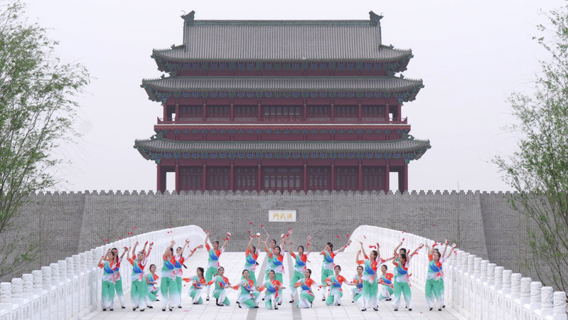 5月17日,师生一行首先抵达凤阳钟楼广场,感受凤阳鼓乐文化的浓烈氛围。随后前往明中都午门遗址、洪武门广场、开国功臣庙等历史地标,沿着“凤阳之源”探寻凤阳花鼓的文化根基,了解鼓舞艺术与地域文化之间的深度关联。在淮河边烟锁浮桥的驻足感受中,学生们以肢体语言与自然环境互动,用舞蹈语言记录非遗与生态之美的融合。