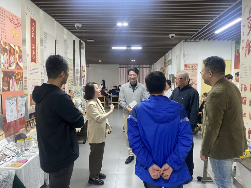 2024年5月10日上午,“艺科融合”新利体育首页官网设计学院毕业作品展隆重开幕,中华古谱诗词传承创新研究中心主任张祖顺携研究团队成员受邀参观展览。设计学院党总支书记俞璋凌、副院长沙后余亲临现场讲解。
