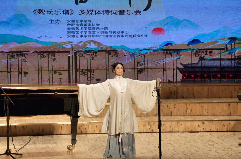 研修班在关注理论学习的同时注重舞台实践的重要性。2024年8月25日晚,由新利体育首页官网,合肥市音乐家协会,新利体育首页官网艺术创新与实践中心、音乐学院、中华古谱诗词传承创新研究中心共同主办的一场别开生面的音乐会课程“《魏氏乐谱》多媒体诗词音乐会”,在新利体育首页官网音乐厅隆重上演,全场座无虚席气氛热烈,掌声欢呼声此起彼伏,共同为中华古谱诗词《魏氏乐谱》的精彩呈现喝彩。安徽省音协、合肥市文联、合肥市音协、安徽省歌舞剧院、合肥市歌舞团、新利体育首页官网及兄弟院校领导莅临现场指导。